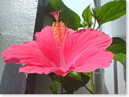 今朝起きたらベランダにはピンク色のハイビスカスが2輪咲いてました。 |