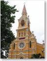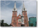 ベトナム2日目。現地時間8時前に起きて、ホテルのビュッフェで朝食。 朝からフォーをいただき、ベトナム気分を満喫してます。 身支度を済ませ、ホテルを出ようとしたところ、KEのデジカメの具合が悪くなるというトラブルもあったけれど、無事回避出来て一安心。 観光の一番目のスポットは、シェラトンホテルから歩いて数分の場所にある「聖マリア教会」へ。 そこに歩くまでに客引きの多いこと。バイク乗らないか?とシツコク付いて来たり、タクシー乗らないか?等々。 すべて無視してやり過ごすも、何故だかKEは狙われやすいのか、なかなか離れない。 ヤレヤレな市内観光です。 その後は「中央郵便局」→「戦争証跡博物館」→「統一会堂」→「ホーチミン市博物館」→ 「ベンタイン市場」→「マリアマンヒンドゥー寺院」と全て歩き通し。