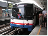 初日の夜の食事は、タイ宮廷料理ということで、シーロム通りの「デュシ・タニ」ホテルにある 【ベンジャロン】というレストランで食事。 宿泊しているホテルからBTS(Bangkok mass Transit System)つまり、モノレールみたいな乗り物に乗って、サイアム駅で乗り換えてサラデーン駅へ。そこから歩いて2〜3分の場所にあるホテルまで移動しました。 このBTSは比較的新しい交通網らしく、車両も駅も新しくて なかなか快適。ただし、長い距離を乗るには、冷房が効きすぎなので、暑がりの自分でも流石に寒すぎる。 社内は、日本の鉄道みたいにクッションが効いた座席ではなく、汚されても構わないように 硬いプラスチックの座席。ハッキリ言って、痛いです。 |