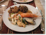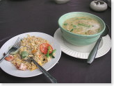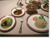 | ディナーは全てベンジャロン焼きの食器で給され、味もなかなか良いし、見た目もいい感じ。 一人2000バーツ(1バーツ=3円)以上するだけある、美味でした。 お腹も満たされたし、少し夜の散歩ということで、【パッポン・ナイト・マーケット】へ。 途中、駅前の夜店でいい感じのポロシャツを200バーツまで値切ってGet! 熱気溢れるナイトマーケットは、怪しいフェイクモノが多く、結局何も買わず。 初日ということで、朝も早かったし、二人BTSに乗って宿泊先のホテルに戻って 明日に備え寝ました。 |
