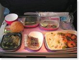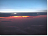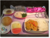 | 機内に入ると、行きとは違い、乗客が少ない。 席もかなり空いているので、搭乗口のドアクローズと同時に アテンダントに断りを入れて席を移動。 エコノミーでもユッタリ使えました。 11:20に離陸し、タイを後にする。 上昇とともに遠くなるタイの街並みを眺めながら、今回の旅行を振り返ると 雨季にもかかわらず、スコールや雨に泣かされることが無かったのは ラッキーなことだったと思う。 海外旅行ならではのハプニングはあったけれど、それも旅行の想い出。 気がつけば疲れが出たのかいつの間にか寝てしまっていた。 気がついたときは、既にミールを配膳中。 寝ぼけ眼でシュリンプをチョイス。少しスパイシー。 相変わらず野菜が殆どなく、胃もたれ気味。 食後は寝たり起きたり。 夕暮れ前の上空は、幻想的な景色が窓の外に広がっていて デジカメで景色を撮りまくり。 |