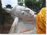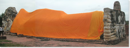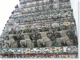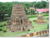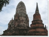 まずは【ワット・ヤイ・チャイモンコン】で典型的なアユタヤ様式の仏塔や寝釈迦仏を見物。スケールの大きさに、しばし圧倒。ようやく「タイに来た」という感覚を覚え、次なる遺跡を見たい好奇心に駆られた。 次に観た場所は【ワット・プラ・マハタート】。 左の画像を見たことある人はいると思うけれど、ビルマ軍の侵略によって廃墟とされたらしく、頭部を落とされた仏像が沢山。 長い年月を経て、ガジュマル(?)の根っこに填まり込んだ、仏像の頭部。 ![]() ワット・プラ・マハタートの隣にある【ワット・ラチャブラナ】。 クメール様式の仏塔はトウモロコシのような形。 とにかく大きくて、それでいて塔に登れるので、登ったけれど、流石に疲れます。そして、怪しげな雰囲気が充満。 なんだかバチがあたりそうで、早々に降りました。 この時すでにランチタイムも過ぎていたので、ランチタイム。 ということで、本場モノのタイ・グリーンカレーをいただきました。 正直、生野菜や衛生的にどうなの?状態の場所だったけれど、ある意味勢いで食しました。で、味は・・とても辛いけれど、美味しい! 汗をかきながら、殆ど全部を平らげて、満足! ここからグリーンカレーにハマってしまいました。 カレー=黄色ってイメージだけれど、タイのグリーンカレーは スープカレー的な存在だから、ちょっとしたスープとして頂くのも良いかも。 ![]() 食後に向かった先は、【ワット・プラ・シー・サンペット】。 3つの仏塔が並んでいる、王室専用寺院跡。 ここで入場料30バーツを払ったんだけど、100バーツを出して 70バーツのお釣をもらって、ポケットに仕舞ったまでは良いけれど、いつのまにかハンカチを出した時に落としてしまったみたいxxx これなら入り口で売り子をしていたお婆ちゃんの葉書を買えば良かった。 そして、高さ5m、全長28mの寝釈迦仏。【ワット・ロカヤ・スター】 とにかくデカイ。垂直にすると10階建てのビルになるらしい。 つまり、今のマンションと同じ高さってこと? ![]() ここまでくると、もう既にバテバテなんだけど、タクシーだったから良かったのかも。 ![]() 最後は【ワット・チャイ・ワッタナラム】 広大な敷地に、とにかくデカイ仏塔。 もうここまでくると、お腹いっぱいという感じで、ある意味義務的に写真を撮っていました。 半分騙されたアユタヤ・ツアーだったけれど、タクシーだったから楽だったし、行き帰りの心配もなくて、良かったのかも。 タクシーをチャーターした場合でも、7時間で2100バーツはかかるみたいだし、これはこれで良かったのかもね。 帰りのタクシーは殆ど爆睡。 明日と明後日のツアー予約をしなくてはならなかったので、ホテルに帰らず 「パンダツアー」で最終日のディナークルーズを予約して、地下鉄とBTSを乗り継いで 「ウェンディーツアー」で明日の水上マーケットを予約。 すでにこの時点で疲れも頂点。 でも、今夜は金曜日。ムエタイが盛り上がる日でもあるし、ホテルで一休みして、ホテル前のマクドナルドで夕飯。普段なら有り得ないけど、疲れているしね。 ![]() で、ホテル前からタクシーに乗って【ルンピニ・スタジアム】へ。 空調も無く場内はむせ返るような熱気。 2000バーツを支払い、リングサイドの席を確保して、鍛え上げられた肉体の戦いを観戦。 迫力満点で、タイ人は比較的自分の好みの体型と顔が多いので、選手たちはみんな萌えでした(汗)。 とにかく暑い&熱い試合で、充実感満点。 メインの試合が終わると、即効でチャンピオンを追いかけて、一緒に写真撮りました! 惚れ惚れする筋肉を間近に見れてウットリ。意外にも背が低い。 それでいて、顔や目つきはファイター。カッコ良過ぎ! ![]() 試合後は近くの【スアンルゥム・ナイト・マーケット】で お土産類を購入。 ナイトマーケットは楽しいね! 終電を乗り継いで、ホテルに帰って、明日に備えて寝ました。 明日は「水上マーケット&王宮観光」です。 |