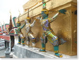 | 市内観光はズレズレになって始まったけれど、ワット・プラケオ&王宮の金ピカぶりには 「タイってスゴイ!」これって金閣寺よりもスゴイ! そう思いながらパシャパシャとデジカメで撮影。 ![]() 上の画像にある建物を支えている仏像(?)は鬼と猿らしいです。鬼は真剣に支えていて、猿は形だけみたいです。 ガイドさんは何か説明していたけれど、あまり理解できず。 そして、少しだけ移動して、今度は「暁の寺院」で有名なワット・アルンへ向かうために渡し舟に乗船。 朝焼けの赤い空をバックに、もしくは夕焼け空をバックに見てみたかった。ガイドブックのように。。 そして、ここでも鬼が寺院を支えています。ここまでくると、鬼も大変だなぁ・・・って感じ。 そして、ここは金ピカではなく、もっと庶民的で 柄のように見えるものは、中国から輸入された食器などの 破片で飾られているらしいです。(鬼太郎談) 寺院と街が融合しているタイは、やはり日本の京都みたいだと感じたのは、自分だけではないはず。 住んでいるバンコクの人々はどう感じているのかな? そして、極めつけはワット・ポー。金ピカの寝釈迦仏はデカイです。タイは金色が好きみたいです。 ここまで金綺羅金だと、胸焼け状態。 奈良の大仏様は銅色だから、こうしてタイの仏像は立派に感じます。 日本は実は質素な民族なのでは?と感じたりもして。 頭のパンチパーマ・・・失礼、巻貝の説明も聞きました(鬼太郎談) お釈迦様が世界一周をしている途中の砂漠で、水もなくて退き返したときに、巻貝を頭一杯に貼り付けて、貝から垂れる水で砂漠を凌いだらしいです。ホントかよ?って感じ。 タイ人のガイドさんが言うんだから、本当でしょう。 タイ三日目は土曜日。 とくれば、やっぱりナイトでしょ! ということで、まずはサラデーン駅まで行って、「ザ・ミックス・パブ&レストラン」を探すも 見当たらず。その代わりに「@リチャーズ」というお店が。 店員に聞くと、前のお店は閉店して、今の新しいお店に変わったらしい。 でも、店員がゲイってのは一緒らしい。 そして、「フリーマン」ってお店も、2ヶ月間お休みらしい。チェッ。 一旦ホテルに戻って、次なるクラブ「DJ Station」に向かうもIDが必要とのこと。 パスポートも免許証も持っていなかったので、またまた一旦戻って、自分は免許証を持って KEはパスポートを持って3度目のサラデーン(シーロム)へ。 「DJ Station」はTAI君に話は聞いていたけれど、物凄い人。 身動きも出来ない、満員電車状態xxx 雰囲気を少しだけ味わって、早々に退散。 外に出ようと人ごみを掻き分けていたら、腕を掴む人が!? 「だれ?」と振り返ると現地の子。え?もしかして、ナンパ??こんな自分を!? ・・・でも、タイプじゃなかったので、お断りして店を後に。 その後、「neo」というお店でも、現地の子にガン見されていたし。 オレってタイ人にうけるの?? 結局何も無かったけど、タイのゲイナイトを体験出来たので、満足満足! |