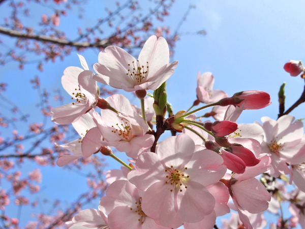 そして、今日は少し肌寒いけれど天気も良く、ベランダから見える緑道の桜の樹が一気にピンク色。 まだ咲いている感じじゃなかったけれど、念のためカメラ持って出掛けると、咲いてました。1分程度。