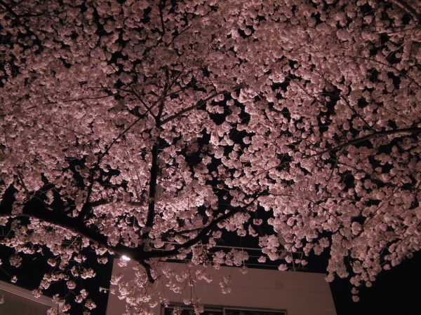 仕事帰り、一駅前で下車して歩いて自宅までの帰り道。 近所の緑道は、近隣住宅からのライトアップがされていて夜桜気分。 ホワイトバランスを変えたらこんな感じの目で見た時と同じ感じになりました。 う~ん、カメラって面白い。