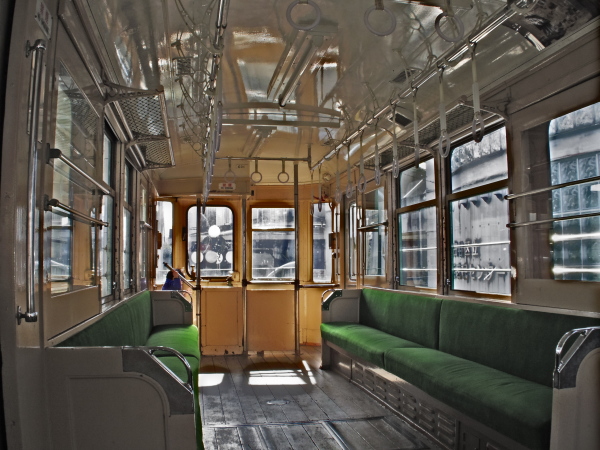 車内はこんな感じ。どこか懐かしいような「三丁目の夕日」に出てきそうな雰囲気。