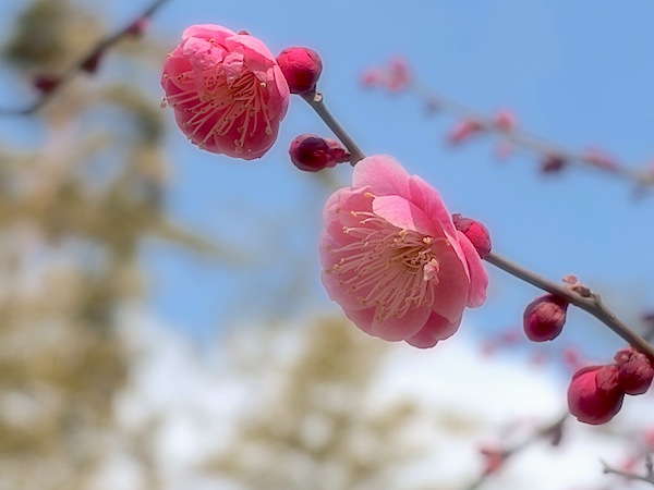 | 3連休、あっという間でした。 それなりに毎日充実していたので、楽しいあっという間でした。 特に予定もしていなかった3日目はユックリと起きる。。。 つもりが、月曜日の目覚ましが鳴って会社行くのと同じ時間に起床。。 ま、それでも休みだということで9時くらいまでベットでゴロゴロ。 遅く起きた朝は近所のカフェでモーニング。 部屋に戻ってゴロゴロ。このユッタリとした時間が嬉しい。 天気も良いし、散歩でもしようと二人で出掛ける。向かう先は代々木公園。 途中、梅が咲いている樹があったので、カメラでパシャリ。