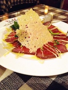 | 16年前の1月19日、KEと出会いました。 途中半年のブランクはあるけれど、こうして17年目に突入します。 特別に何かイベントとかは無いけれど、ささやかながら二人の出会い記念日として美味しいものを食べる日。 いつもはカニ好きな二人としては「かに道楽」で食事をするのですが、夕方電話で予約をするも 新宿界隈のお店はどこも満席。来店しても2時間待ちとのこと・・・ ということでネットで探したお店、笹塚にある「キャンティー・ノーノ」というイタリアンレストラン。 夕方前、TV番組で紹介されていたイタリアンレストランのチェーン店。 以前、何かのタイミングで別のお店に行ったことがあったけれど、そこは天井も高くて雰囲気も良いお店だったのと リーズナブルで美味しかったので、KEはそこを希望したけれど予約の電話入れるも満席。 でも、ここで正解だったかも。 店内は少し手狭なボックス席が5つほどと、小上がりのパーティースペース、窓際のテーブル席という感じ。 それでもボックス席に通されて、寒くもなく暖かい。 にしても、ここに大人の男が4人通されたら狭いかも。 食事はやっぱりリーズナブルだけど美味しい。 サラダのドレッシングはオリジナルで、ワインの瓶に入っていて、好きなだけサラダに掛けて食べられる。 今までに食べたことがない癖になる感じの絶妙な味。 エビのアヒージョもボリュームあって食べ応えあるし、ピザもパスタも美味しい。 真夜中のパスタというだけあって、目が覚めるようなピリ辛でそれもまた美味しい。