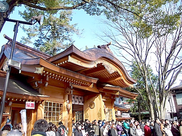 | 新年の行事、初詣に行ってきました。 例年のように大國魂神社。「だいこくたましい神社」じゃないですよ、「おおくにたま神社」が正解。 いつものように伊勢丹府中店の9Fにあるお店で、うどんとお蕎麦を買って、境内まで持っていくと御利益ありなので まずはお店に立ち寄る。 その後、参門をくぐりお炊き上げで昨年のお札とお守りを炊き上げてもらい、お賽銭箱前まで。 結構な人出でしたが、その後の行列を知るとまだマシだったと知る。