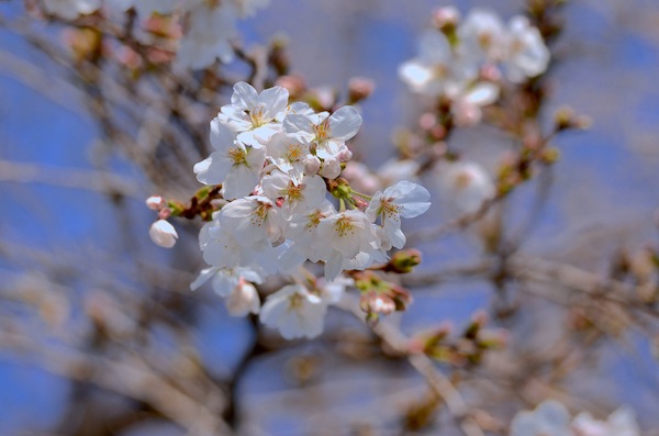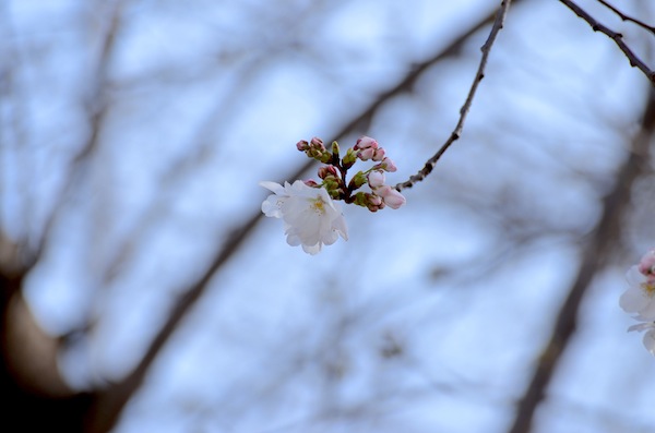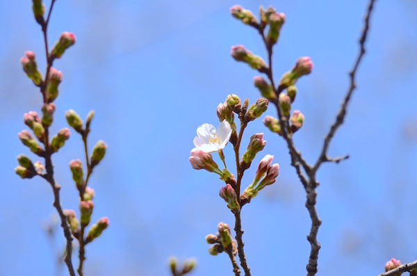 KEと一緒にランチ後、カメラを持って桜並木の道を散歩。 まだまだほんの少しだけしか咲いていないけれど、固い蕾からふっくらとした蕾が随分と増えたので このまま暖かければ一気に咲き乱れそう。