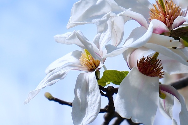 桜もいろいろな種類があるようで、花びらの形もそれぞれ違って、そして色も違う。 でも、桜色は桜ならでは。 土曜日はKEが仕事ということで、一人過ごす春の休日。 天気も良かったので近所をカメラ持って散歩。 桜並木は一昨日まで蕾だったのに、ここも一気に桜並木。早くも花見宴会が始まってました。 桜が一気に咲いてしまって、早春を伝える木蓮や辛夷(こぶし)が咲き始めてすぐに脇役になってしまったようだけれど それでも真っ白な花が美しい。