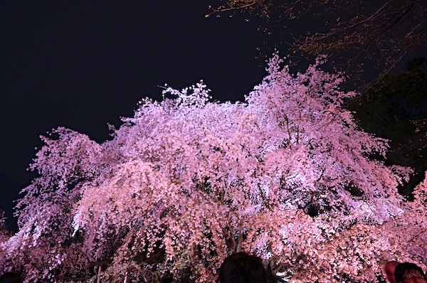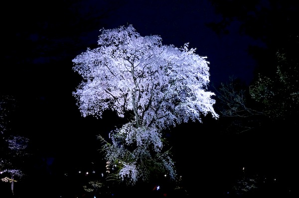 園内を出口に向かおうとする途中の真っ暗な闇に突如表れる桜の大木。 ここのライトアップはまた先ほどの枝垂桜とは違って、妖しい色にライトアップされていて、思わず声が出てしまう。 そんな春の仕事帰りの寄り道でした。 |