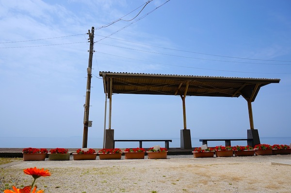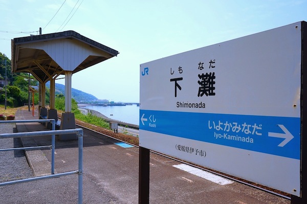 単線路線の無人駅。 青春18きっぷのポスターに3年連続使われたという、とても趣のある駅。 日本一海に近い駅ということでも有名な「下灘駅」。 この写真を撮っていると、しばらくして1両編成のディーゼル車が到着。 乗降客も3人という、都会では有り得ないくらいの長閑さ。
