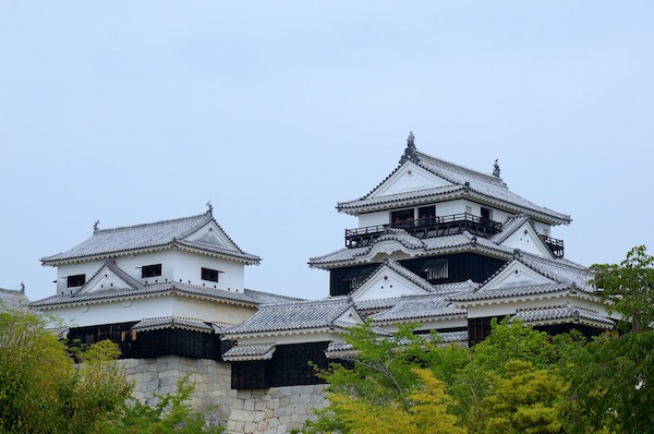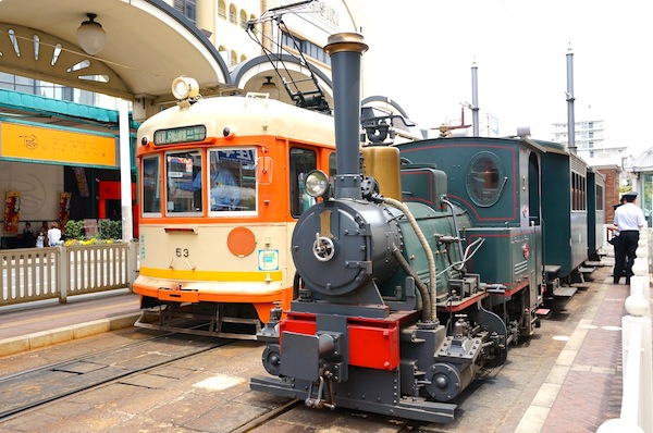 そして「松山城」。 天守閣までは登らず、お城の周りを拝観して、来た方向とは逆の降り口まで道伝いに降りる。 市役所前から路面電車に乗って、まずは松山市内駅へ。 1つ先に走っていた「坊っちゃん列車」の方向転換など見て愉しむ。
