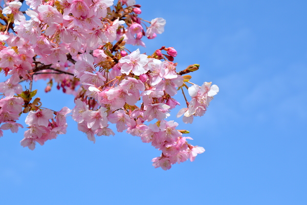 | 今日は昨年から計画をしていた静岡県の伊豆にある河津町の河津桜の名所を観に行きました。 朝9:25に新宿発のスーパービュー踊り子3号に乗って一気に伊豆急河津駅まで。 乗り換えなく行けるのは凄く楽。 約2時間半で河津駅に到着。 まずは駅前の出店をブラブラして、イカスミ麺で作られた焼きソバをいただき、川沿いを散歩しながら花見。 川沿いの咲き具合は2部咲きといった感じで、菜の花もまだまだで、想像よりも寂しい感じが少し残念な感じでした。 原木の河津桜は5部咲きという感じで、それなりにボリューム感あって、青空とピンク色の桜が心地よい感じ。