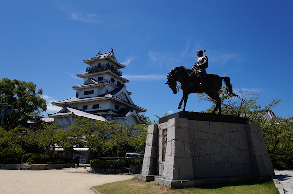 | 東京にもようやく晴れ間がでる夏日になった8月後半。 マイレージがいくつか失効するのもあり、片道だけ特典航空券を使ってひとり旅。 向かうは一度は訪れてみたかった「尾道」。 ただ尾道に行くだけではなく、車で走ってみたかった「しまなみ海道」を四国からレンタカーで移動。 9時過ぎに松山空港に到着後、松山市内を経由して今治入り。 「今治城」を見学しました。 天守閣と城主「藤堂高虎」像と、この青空。