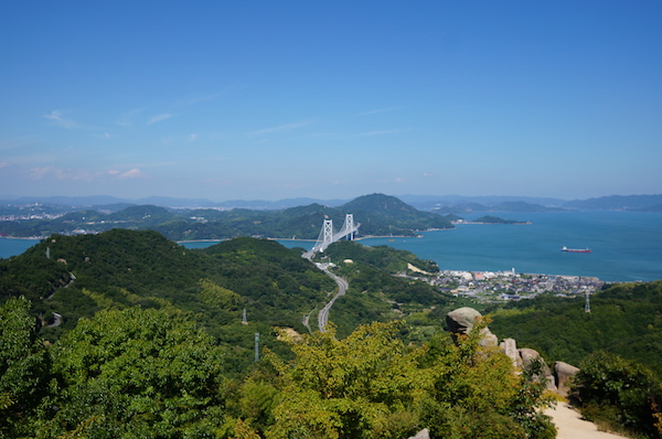 眺める景色は瀬戸内海に浮かぶ島々と「しまなみ海道」の橋が。 音も蝉の鳴き声と吹く風の音、時折聞こえる船の汽笛。 ここに来て良かった。
