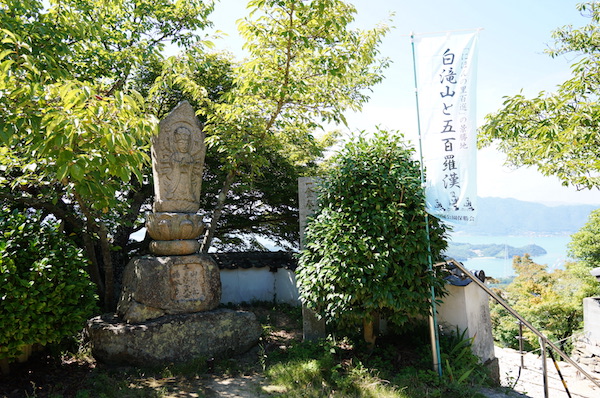 石畳の階段を登ると五百羅漢が祭られている道があり、頂上に展望スペースが。