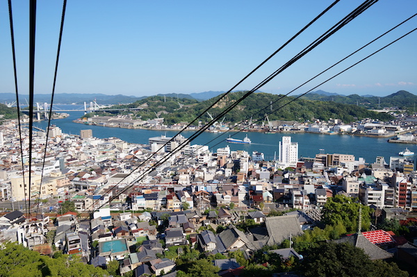 ロープウェイは20人も乗ると一杯になってしまうくらいの小さなゴンドラで それでも15人くらいは乗っただろうか? 人の乗り位置によってゴンドラが傾くし・・・汗 それでもロープウェイから見る尾道水道の景色は圧巻。