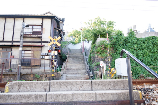 尾道の山側を下りるとJRの線路が直ぐ。