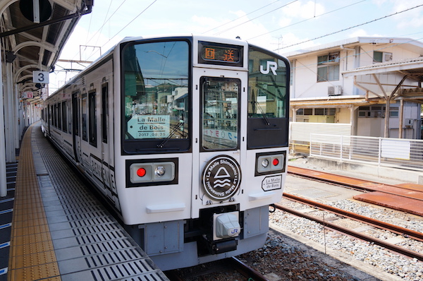 尾道を堪能したところで、新幹線に乗り継ぐ「福山駅」までJR山陽本線のローカル電車で移動。 なんと、3両編成。