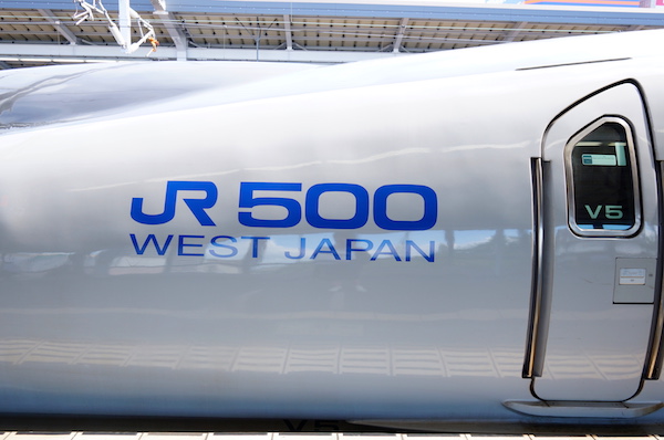 炎天下のなか、無事福山城を仕留めて、駅ビルのトイレ個室で汗だくのTシャツを着替え 新幹線ホームに上がると、な、なんと、懐かしい500系が停車中!
