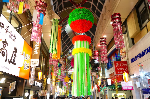 それぞれの七夕飾りには賞が付いていて、商店街の店店が競っているのを感じました。