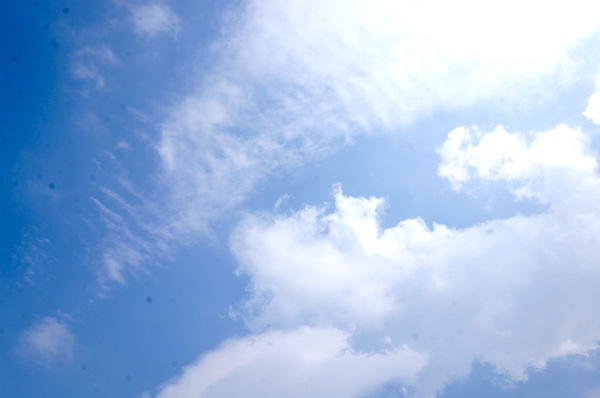 | 夏休みが終わり、3日間仕事をしてようやく土曜日。 仕事といっても業者が20日まで休みだから、大して仕事にもならずでしたが。 そして8月入ってから連日続いた雨空と肌寒さも、昨日くらいから時折日差しも出てくるようになったし 今日も晴れたり曇ったりだけれど、ようやく夏らしくなってきました。 ということで、来週の尾道旅行に持っていくカメラのメンテナンスを兼ねて、晴れ間の空を撮ってみました。