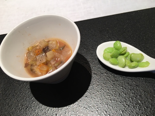 | いまの会社に入社して9年ほど。 会社としても初めての幹部総会に参加(幹部では無いのですが・・・)。 ホテルの会場を借りて、グループ会社からそれぞれ幹部が参加し、現状報告など。 こういうの、正直苦手だけれど運営役のような役割で3時間ほど立ち会い。 総会後は近くのフレンチレストランで会食にも参加。 まずはお通し(Amuse-bouche)。