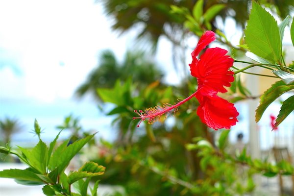 肌寒かった東京と同じ日本なのか?的な南国風景。 沖縄といえば、東京では見かけないハイビスカスや南国の植物が島中に咲き乱れ いかにも南国に来ました的な雰囲気に呑まれて気分は沖縄人。