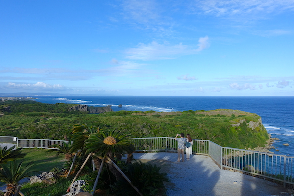 このころから天気は少し荒れ模様。 といっても、雨が降るわけではなく風が強く波も強くなって白波が立ってきました。 散策後、島をグルッと回って古宇利オーシャンタワーへ。