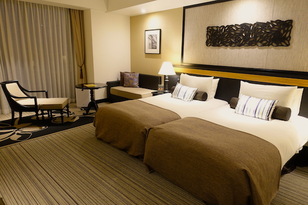 ホテルにチェックインすると、ロビーはバブルの時代に建てられただけあって、広くて豪華。 ただ、部屋は昭和のカホリがするリゾートホテルの部屋でした。