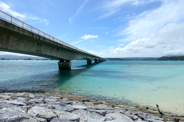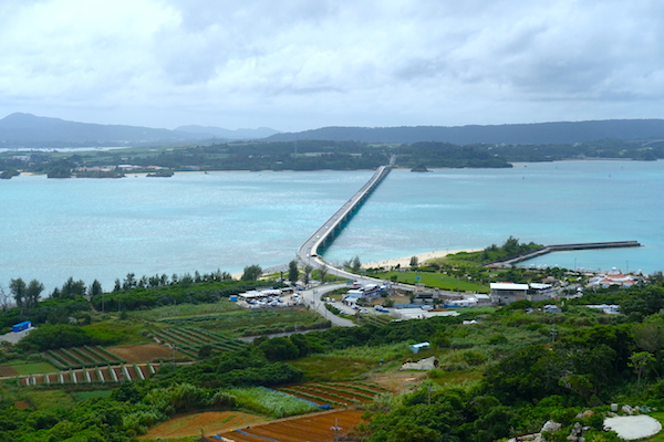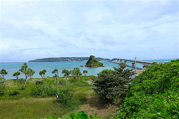 一通り散策したあとは、レンタカーで沖縄本島北部へドライブ。 「美らテラス」に立ち寄り、古宇利島を対岸から眺める