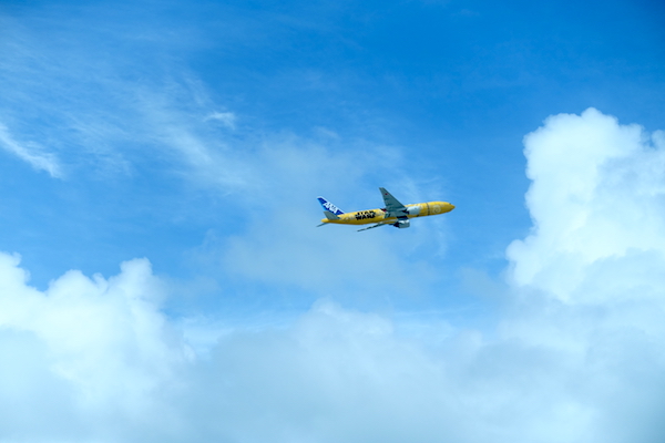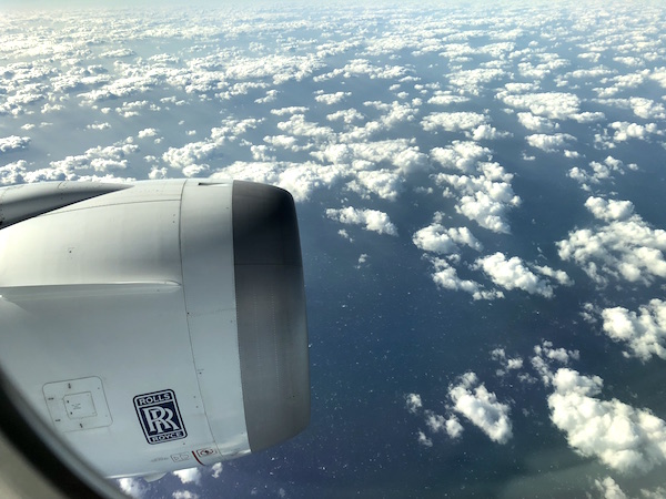 雨降り&肌寒い東京から出発すると、雲の上は快晴。