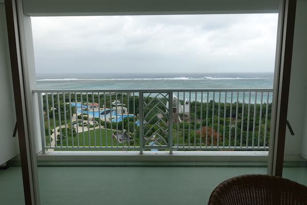 バルコニーからの眺め。昨日は夜だったので波の音しか感じられなかったけれど やっぱりここのホテルはロケーション最高!。