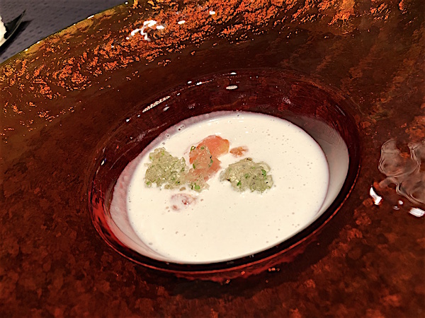 ル・ソレイユの恵みを浴びたトマトと桃の冷製スープ 琉球モヒートのジュレをアクセントに