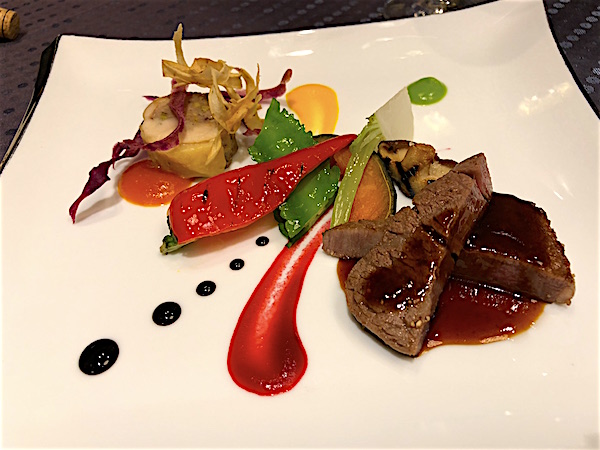 国産牛フィレ肉のソテーとやんばる鶏のガランティーヌ仕上げ グリル野菜と2種類のソース 沖縄野菜のフリチュール添え