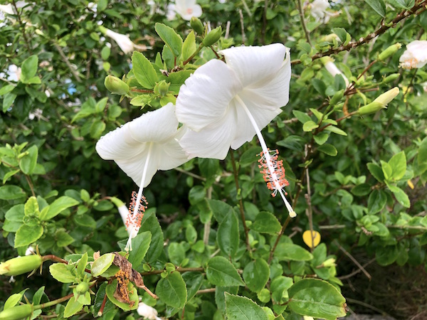 白いハイビスカス、初めて見たかも。