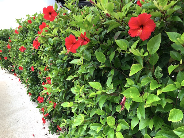 真っ青な空だったらこのハイビスカスの生け垣もさぞ南国を感じさせるのでしょうね。