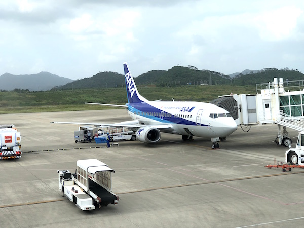 小一時間経ったところで、そろそろ石垣島に近づき、島が見えたところで、何故か飛行機が上昇していく。 機内の雰囲気がザワザワし始めたところでコックピットからパイロットのアナウンス。 「風速が制限値より高かったため、着陸をやり直す」とのこと。 てっきり諦めて引き返すのかと思ったから一安心。 でも、これで再度着陸出来ない場合は那覇空港に引き返すことになるので不安一杯。 そもそも機体自体がB737と小さい機体なので、大型機に比べると風速など制限が高いので まだまだ安心は出来ず、みんな固唾を呑んで着陸することを願っている雰囲気が満載の機内。 そして、いよいよ滑走路が間近に見えたところで横風に煽られながらドンっと強い衝撃とともに無事着陸!