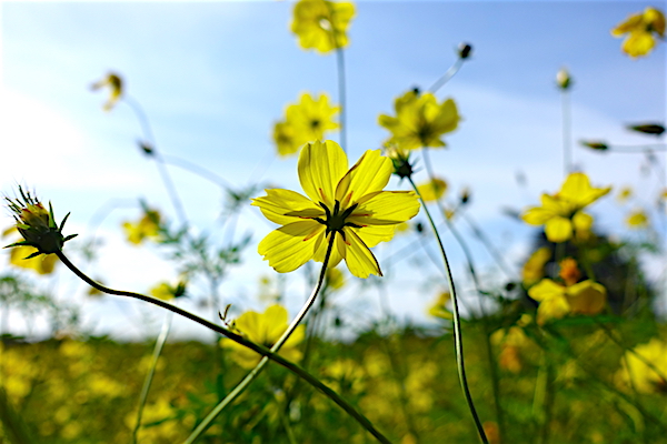ということで、コスモスの丘目指す。 五分咲きというところでしょうか。それなりに咲いていたけれど、以前のようなブワ~って感じじゃない。