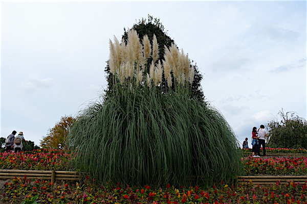 14時頃、空は曇り空。 ということで帰路。 途中、こんなススキのアート?を見つけ、手入れが入ったこと。