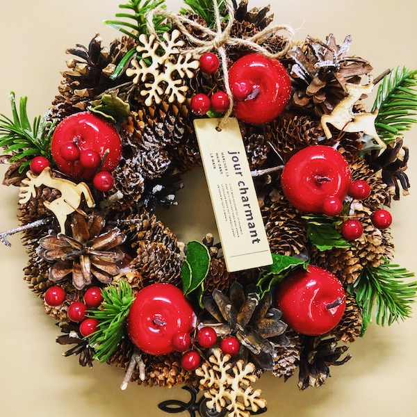 | クリスマス前から飾ったクリスマスリース。 なかなか気に入って、来年も使いまわせるかな?と貧乏性。