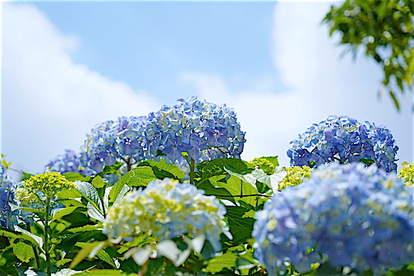 紫陽花は雨が似合う花だけれど、こういう青空にも映えるのも魅力。