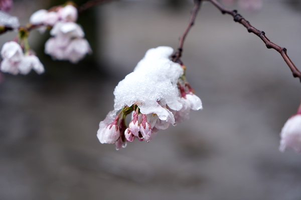 案の定、桜も雪で隠れてしまい咲いた花も閉じてしまう状態の寒々しさ。
