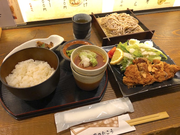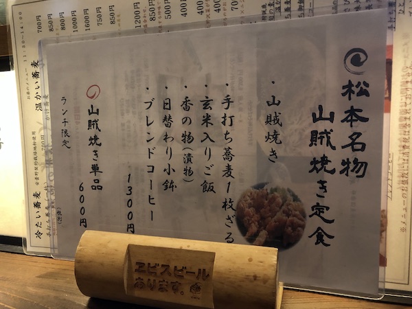 とりあえず、駅近で営業しているお店でランチ。 松本名物「山賊焼き定食」とビールをいただく。
