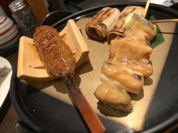 馬尽くしで赤身の刺身もいただき、串焼きも。