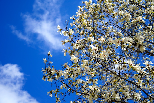 展示施設になっているけれど、然程興味ないのでスルー。 そして、街を歩くと桜も咲いているけれど、辛夷の花も咲いていて、青空と一緒に。