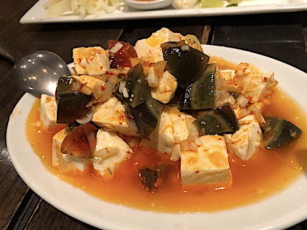 大好きなピータンと豆腐。スパイシーなソースが掛かっていて美味しい。