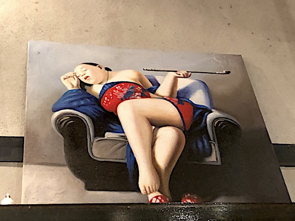 他にもいろいろなポーズの絵でしたが、共通点は豊満な女性がアンニュイな顔で煙管を吸っている姿。 まるで中国の現代アートを感じさせるその雰囲気に魅了され、店主に誰の絵か聞いてみるも 持ち主がお店のオーナーで、上海のボロ市で仕入れてきたらしく画家の名前も知らないとのこと。 ただ、店主もこの絵が気に入って、オーナーの倉庫から引っ張り出してお店に飾らせてもらっていると言ってた。 絵が欲しいとは思わないけれど、絵画集とか出ているようであれば是非購入してみたいと思える 絵に出会えました。 平成最後ということで、食後は歩いて2チョまで移動して、いつものお店「I」さんでカラオケをしながら 飲みなおしして、夜が過ぎていきました。。。 さよなら平成。ようこそ令和。 |